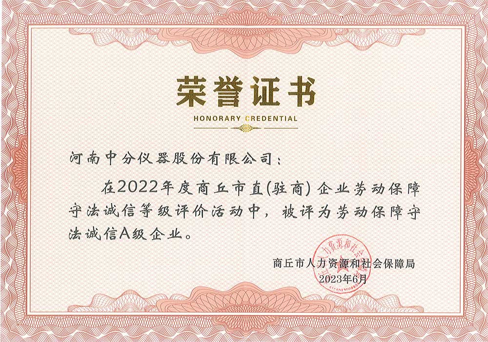 作為行業(yè)的知名企業(yè),中分儀器一直將守法合規(guī)視為企業(yè)發(fā)展的基本原則。公司自組建以來,堅(jiān)持以人為本,著力構(gòu)建和諧勞動(dòng)關(guān)系,建立健全了內(nèi)部管理制度和規(guī)范化的勞動(dòng)關(guān)系,此次獲得榮譽(yù)進(jìn)一步彰顯了公司在勞動(dòng)保障和誠信經(jīng)營方面的突出表現(xiàn),也體現(xiàn)了政府職能機(jī)構(gòu)對公司的認(rèn)可與信任。