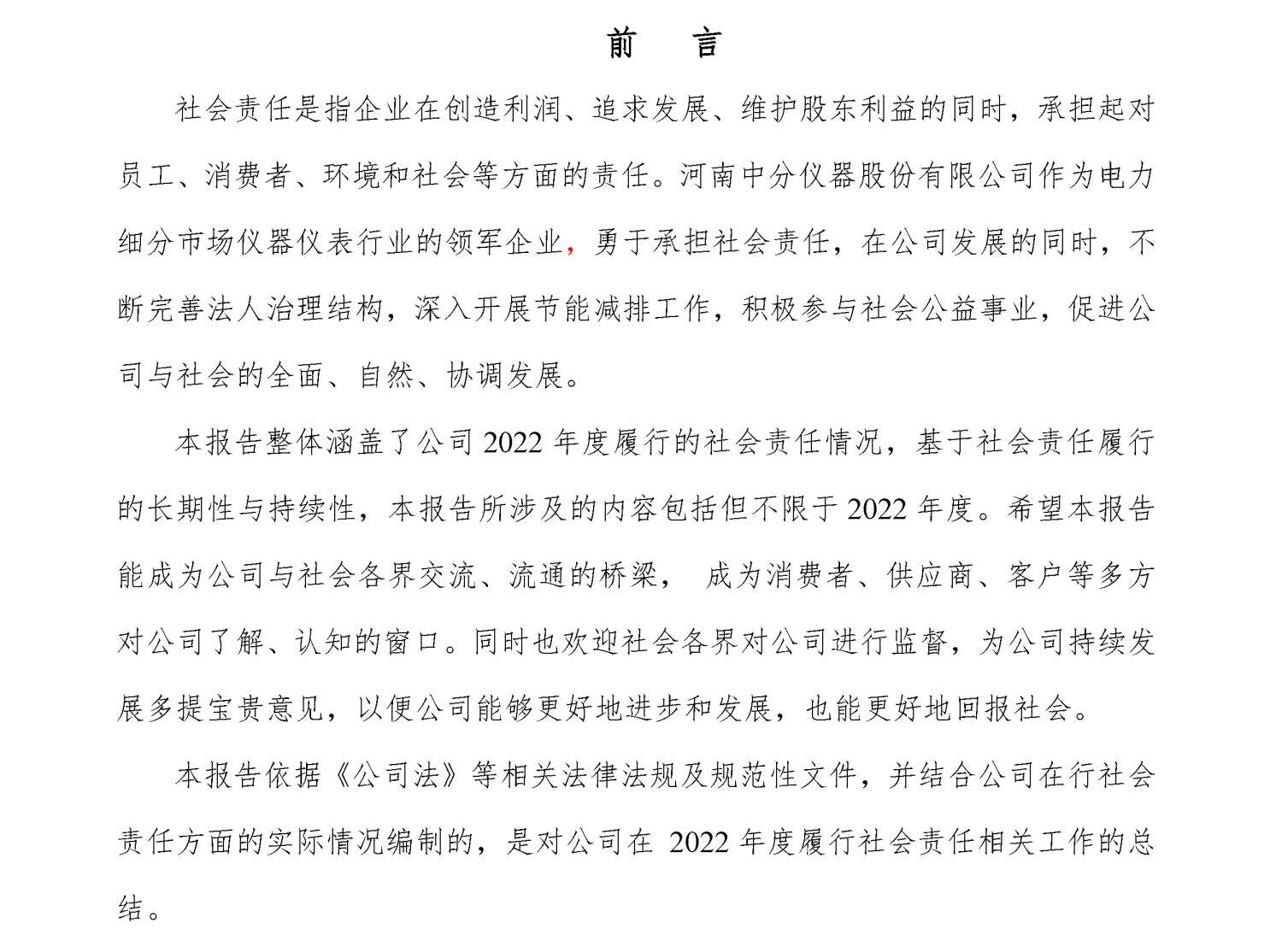 河南中分儀器股份有限公司2022年企業(yè)社會責(zé)任報告